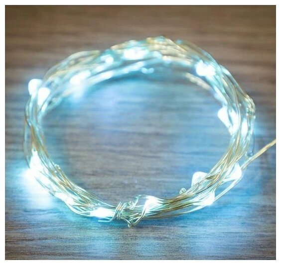 Гирлянда светодиодная "Роса" 2 м, на батарейках, 20 LED, постоянное свечение светло-голубым светом, Neon-Night 303-003 информация: