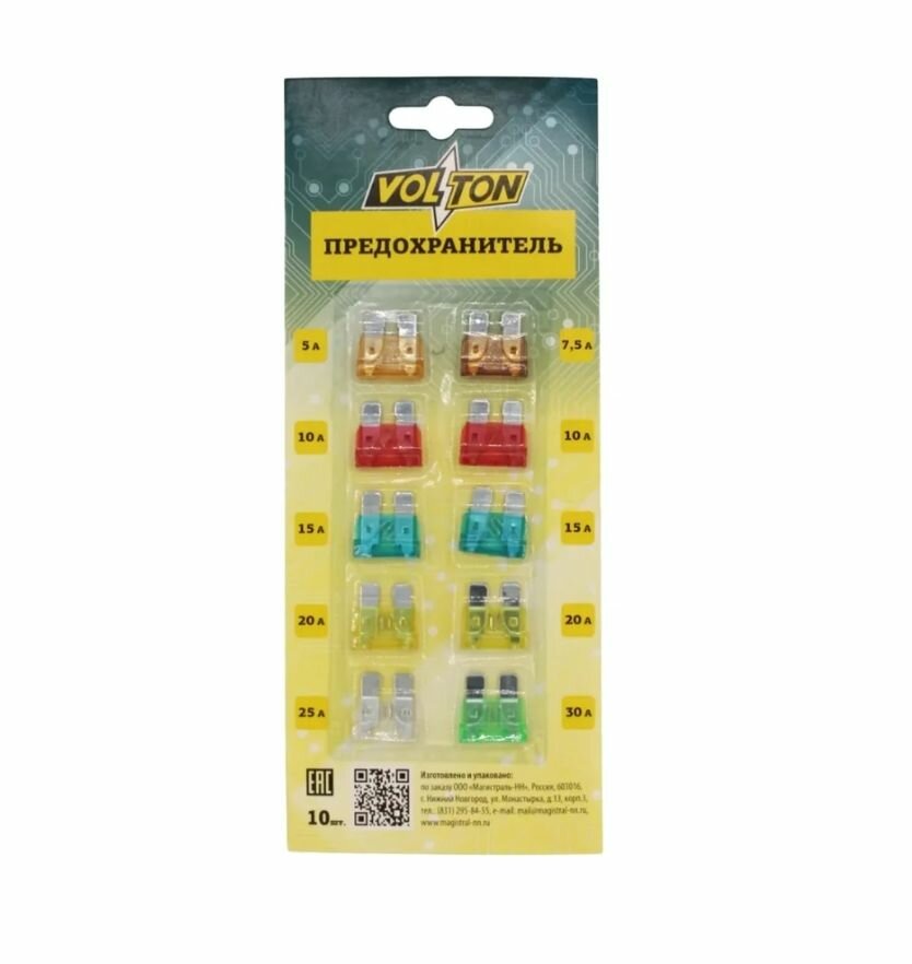 Предохранители VOLTON 1*5А-,1*7,5А, 2*10А,2*15А,2*20А,2*25А,2*30А, NORMA, упаковка 10 штук информация: