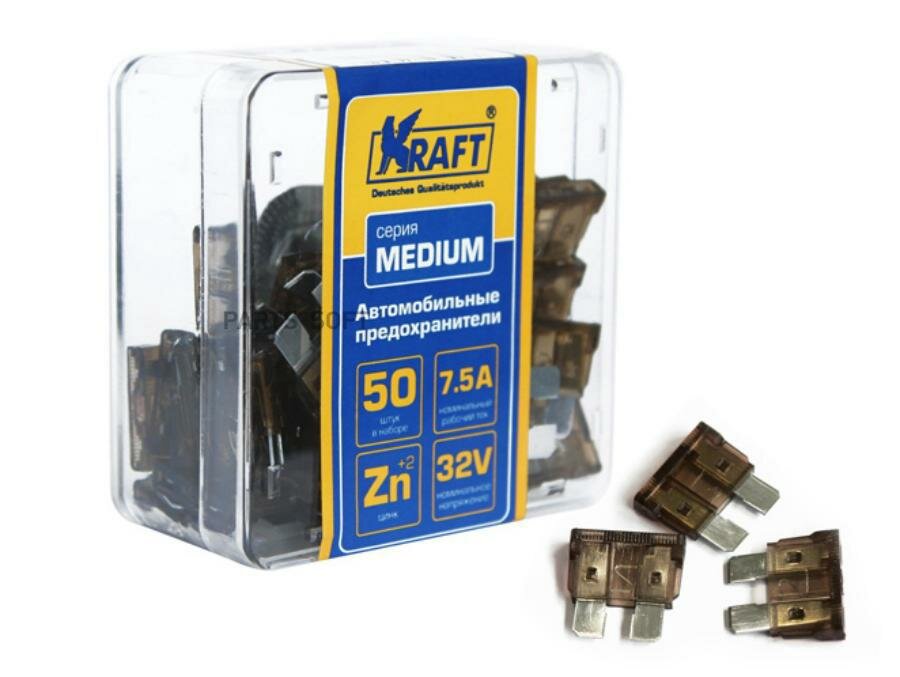 Отзывы на KRAFT KT870002 Набор предохранителей 7,5А (MEDIUM 50шт) пласт. кор KRAFT KT870002