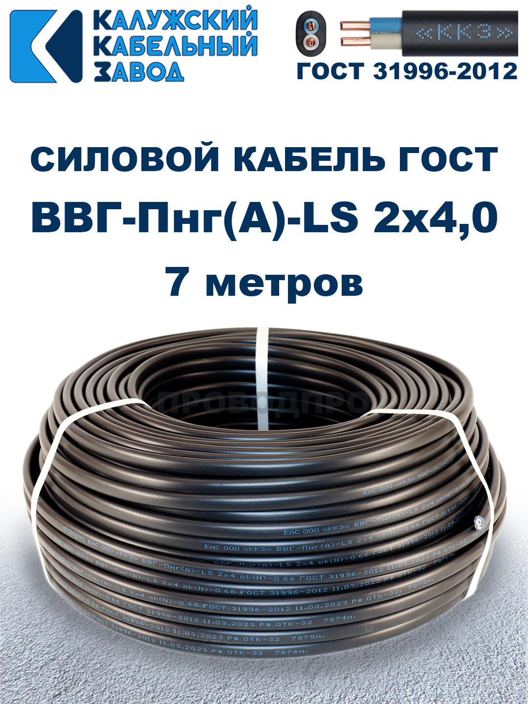 Кабель силовой ВВГ-Пнг(А)-LS 2х4,0 ГОСТ. 7 метров. Кaлyжcкий кабельный зaвoд информация: