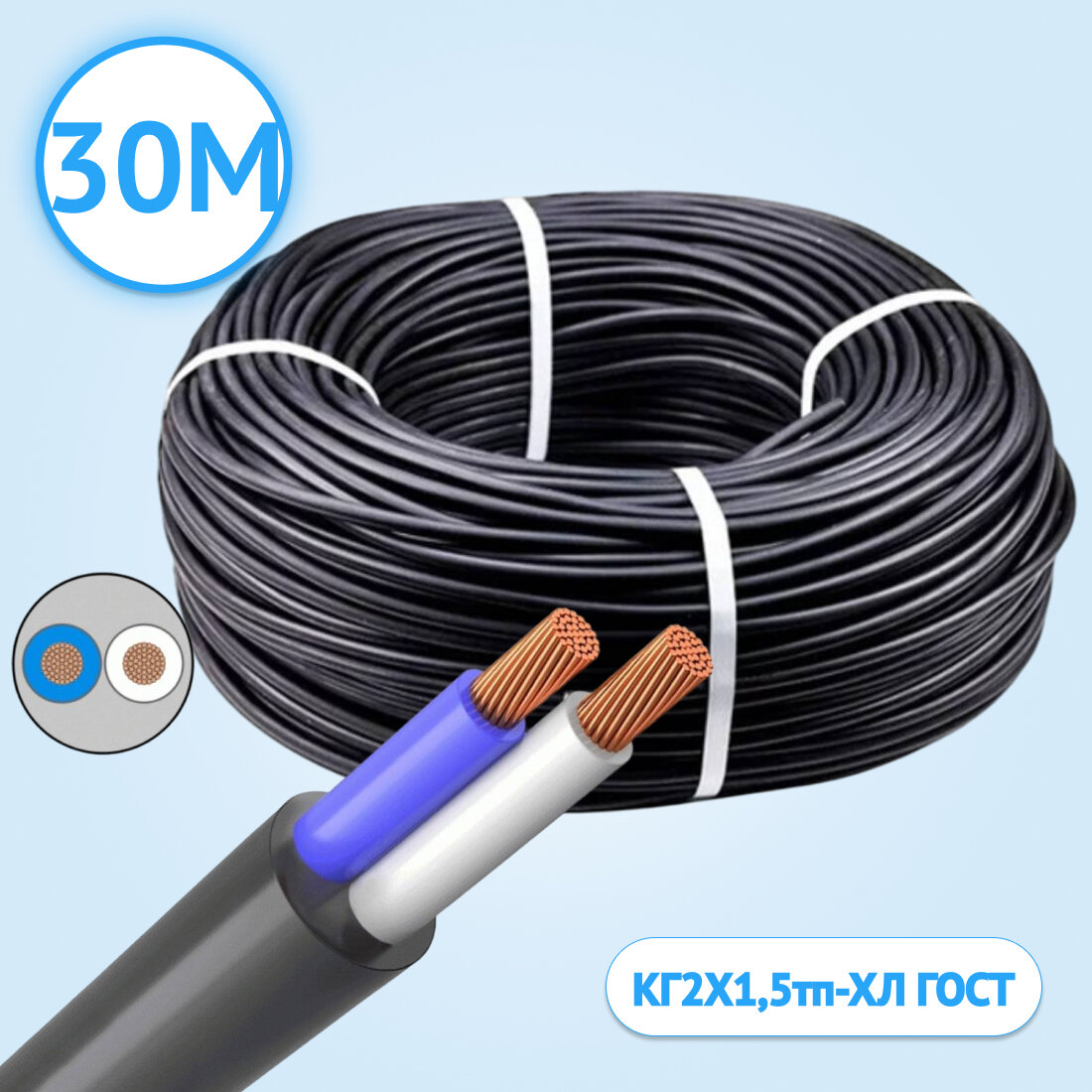 10 цен на Кабель гибкий Кабель ГОСТ КГтп-ХЛ двухжильный 2х1,5 ГОСТ 30 метров.