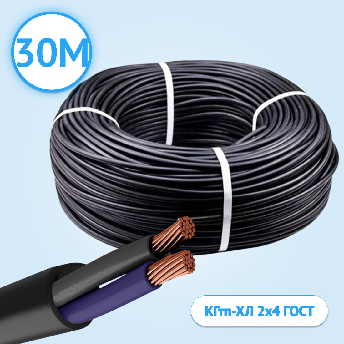10 цен на Кабель гибкий Кабель ГОСТ КГтп-ХЛ двухжильный 2х4 ГОСТ 30 метров.