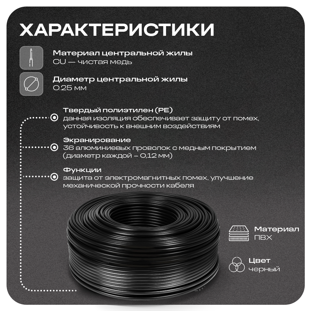 Кабель КВК RG-59 + 2 x 0.35 кв. мм. 200м. Ps-Link KVK-CCA-2035K-200 информация: