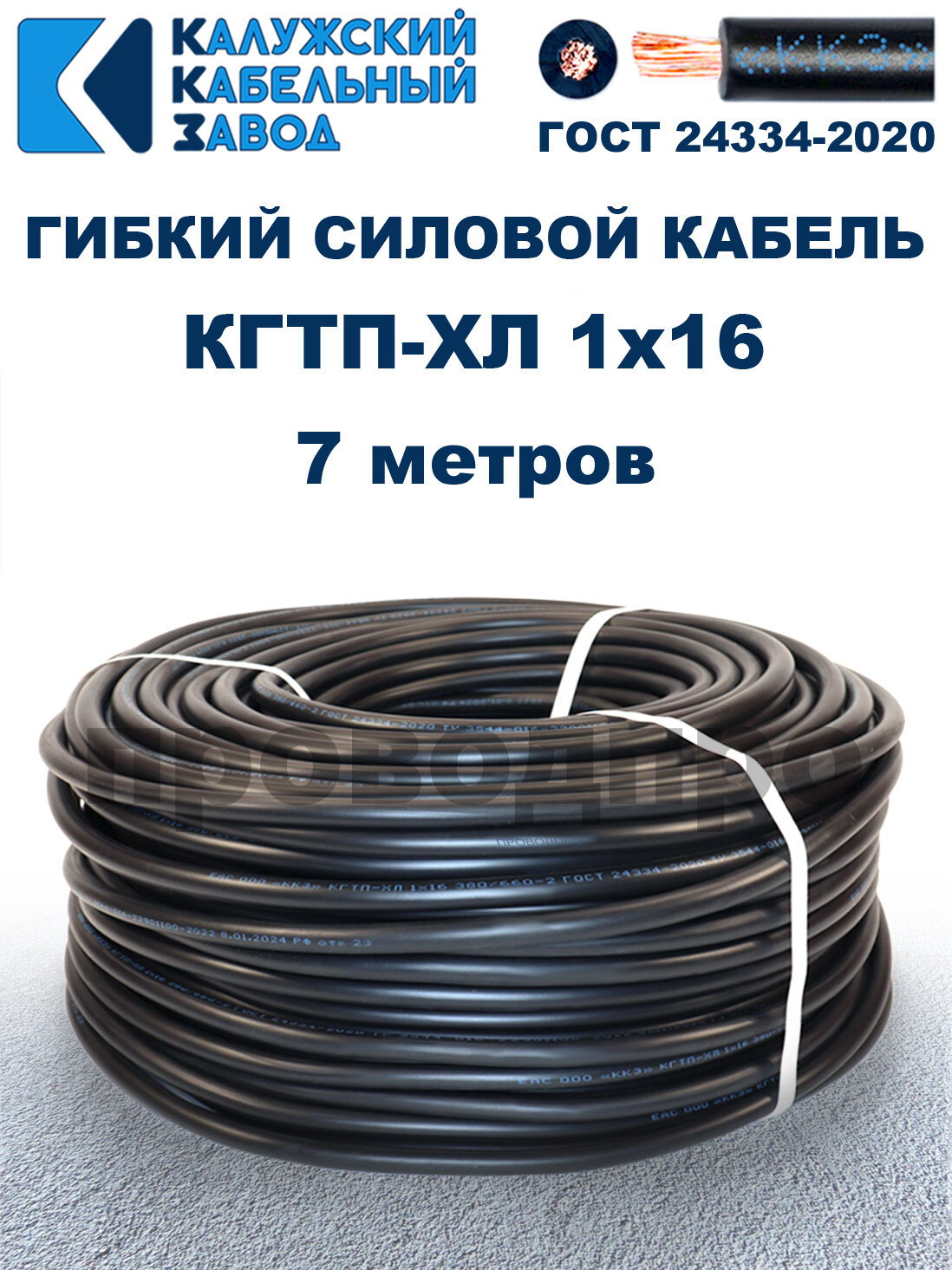 10 цен на Кабель гибкий КГтп-ХЛ 1х16 ГОСТ - 7 метров. Калужский кабельный завод
