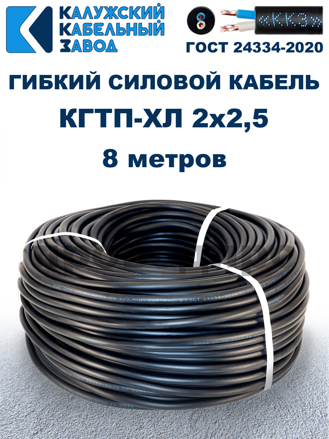 10 цен на Кабель гибкий КГтп-ХЛ 2х2,5 ГОСТ - 8 метров. Калужский кабельный завод