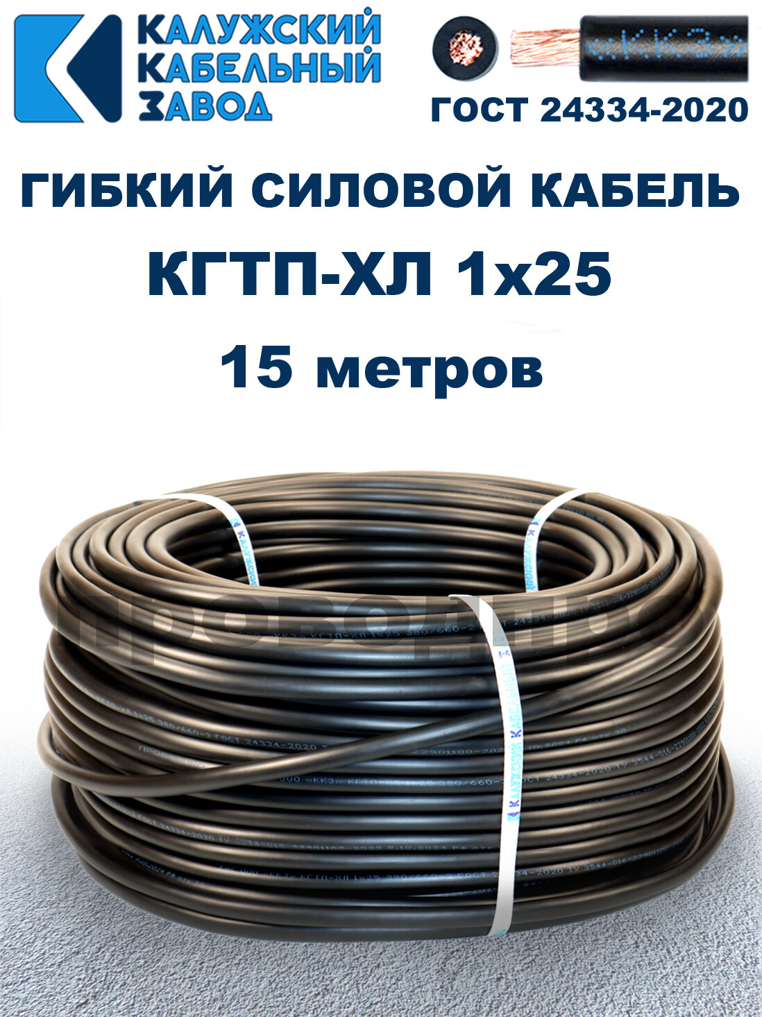 10 цен на Кабель гибкий КГтп-ХЛ 1х25 ГОСТ - 15 метров. Калужский кабельный завод