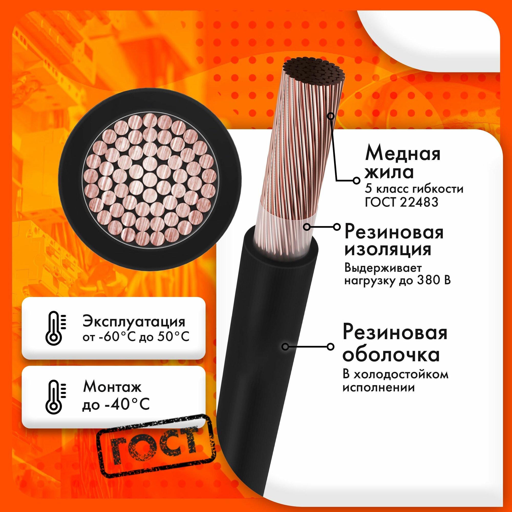 КГ-ХЛ 1х50-220/380В-3 ТУ 16. К73.077-2006 (ГОСТ 24334-2020)(бухта 10 м) 8 073 ₽