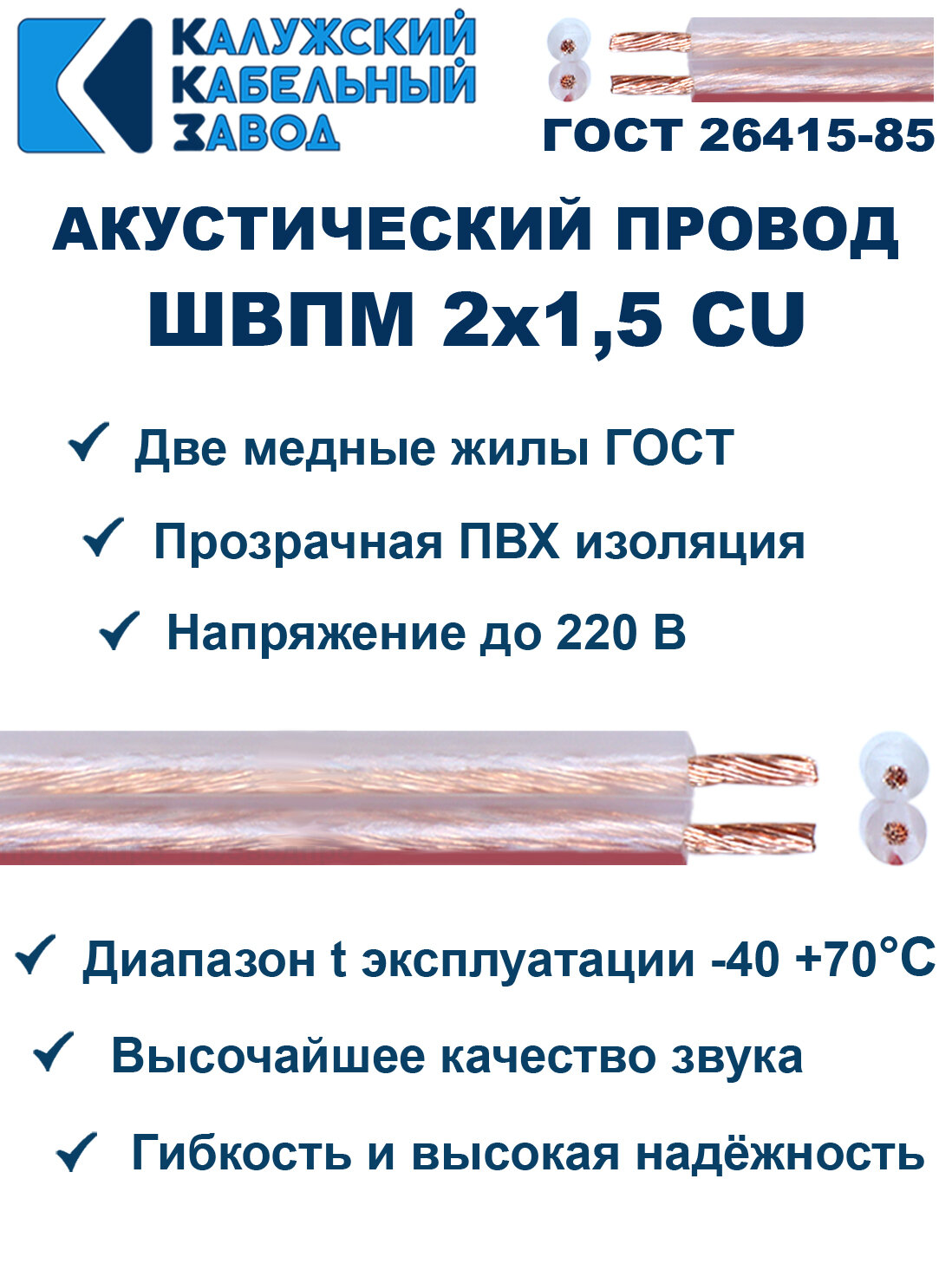 Акустический провод швпм 2х1,5, 30 метров, ГОСТ, Калужский кабельный завод. информация: