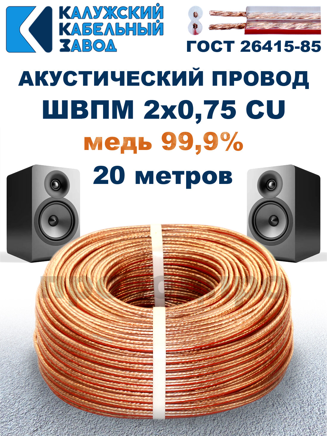 10 цен на Акустический провод швпм 2х0,75, 20 метров, ГОСТ, Калужский кабельный завод.