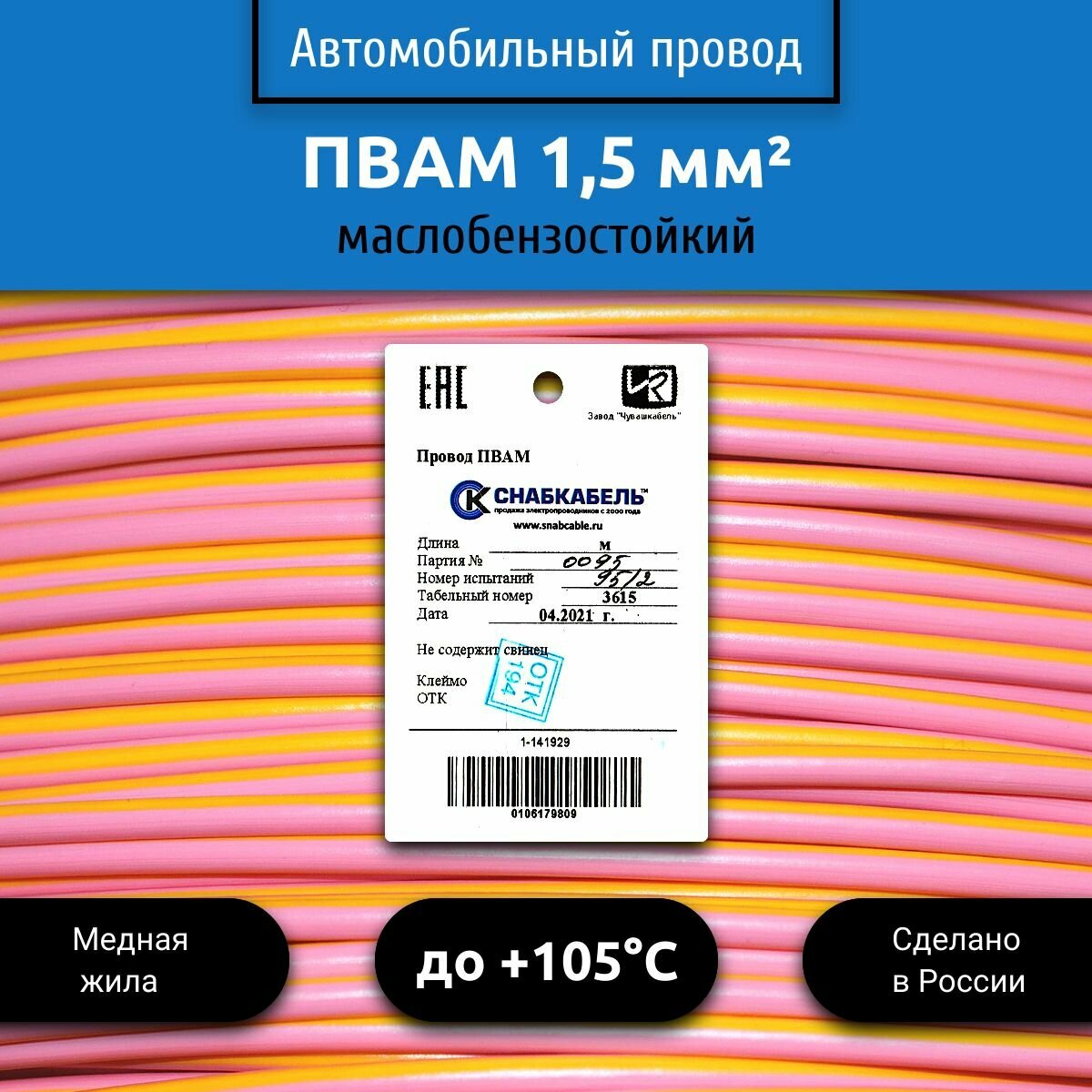 Провод автомобильный пвам (ПГВА) 1,50 (1х1,50) розово/желтый 1 м информация: