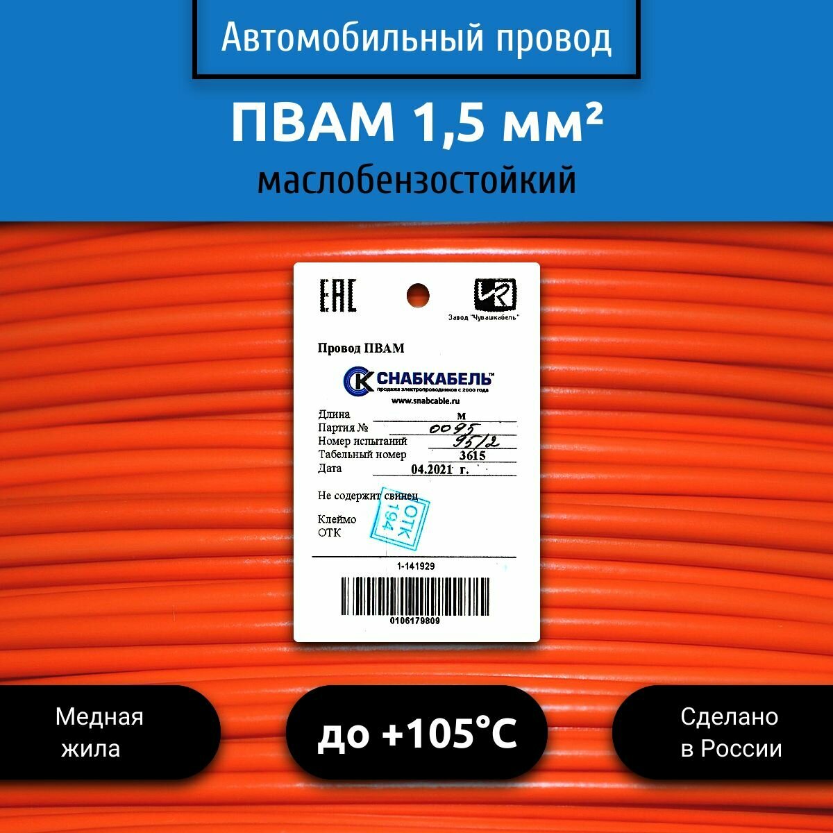 Провод автомобильный пвам (ПГВА) 1,50 (1х1,50) оранжевый 50 м информация: