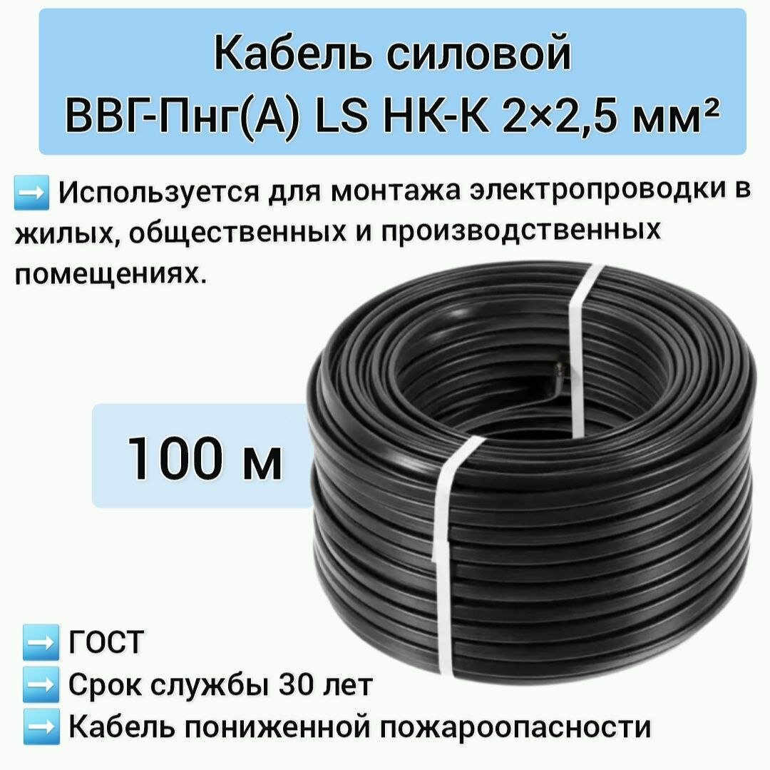 10 цен на Силовой кабель ВВГ-Пнг(A)-LS 2x2,5 мм2 НК-К, 100 м, в исполнении ТУ, черный