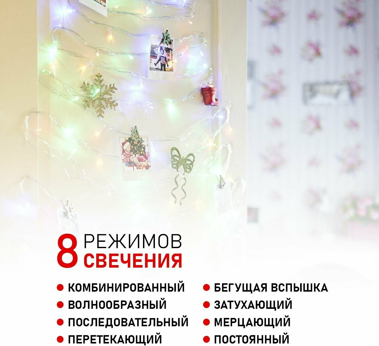 Светодиодная гирлянда "Твинкл-Лайт" 10 м с 8 режимами свечения, 80 LED, цвет свечения: Мультиколор