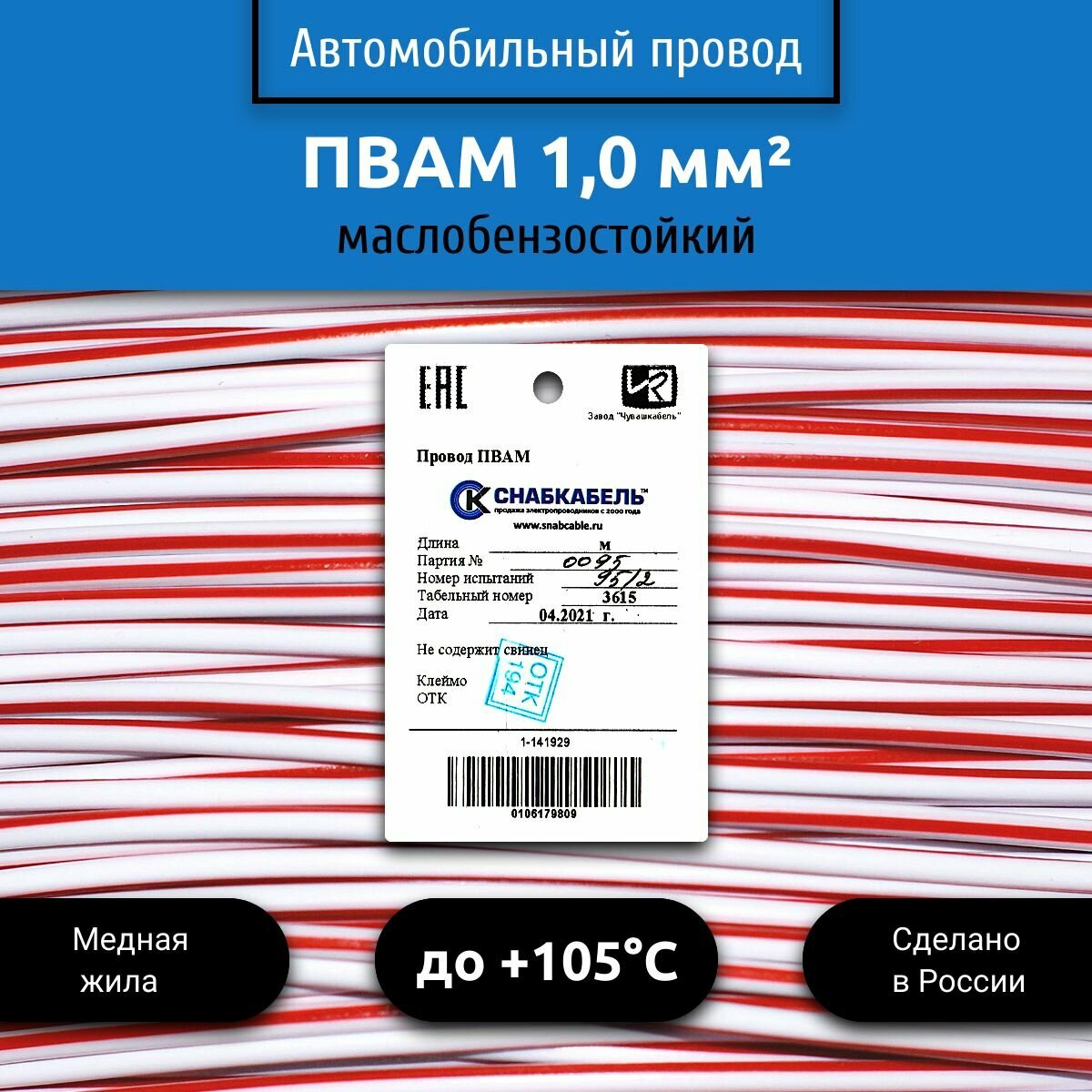 Провод автомобильный пвам (ПГВА) 1,0 (1х1,0) бело/красный 30 м информация: