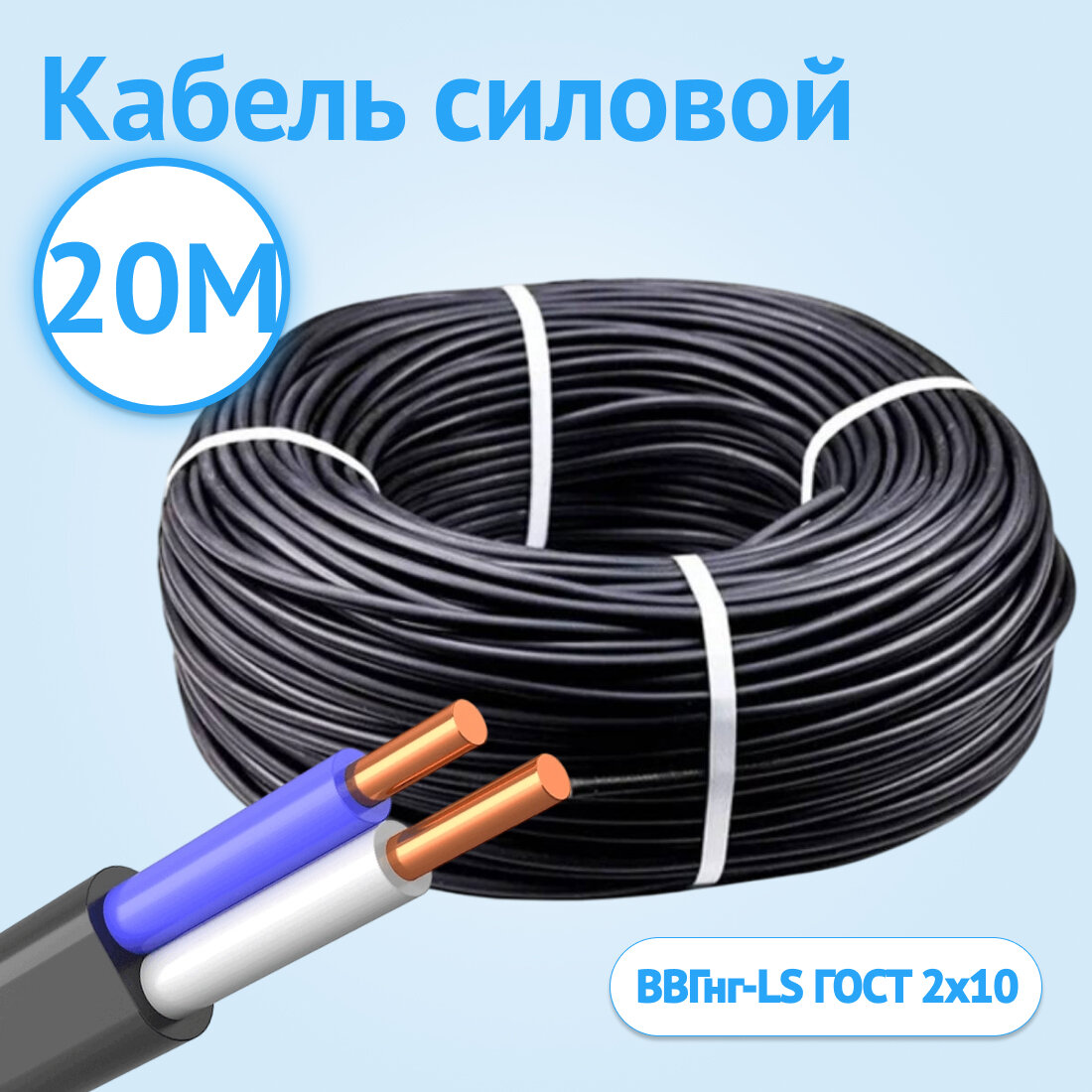 Отзывы на Кабель силовой гибкий Кабель ГОСТ ВВГнг-LS 2*2х10 ГОСТ двухжильный плоский черный 20 м