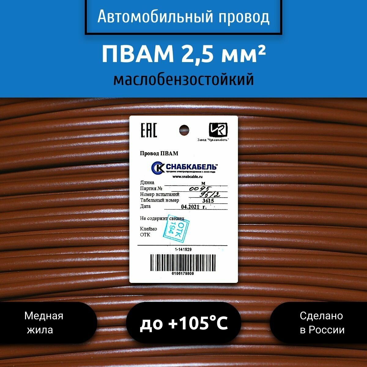 Провод автомобильный пвам (ПГВА) 2,5 (1х2,5) коричневый 1 м информация: