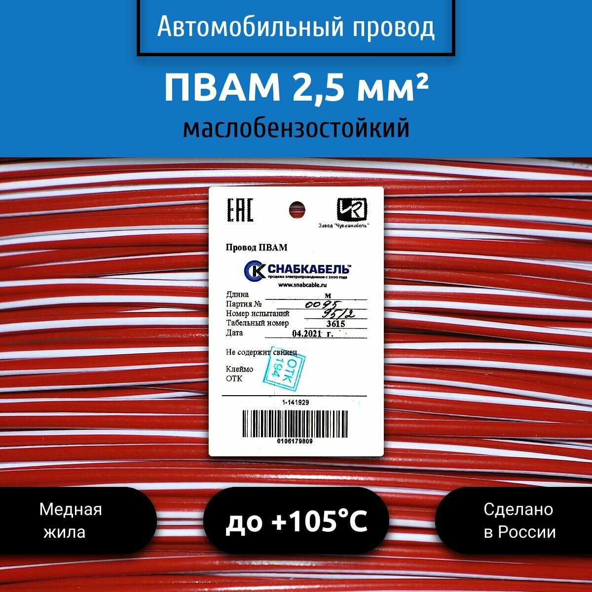 Провод автомобильный пвам (ПГВА) 2,5 (1х2,5) красно/белый 5 м информация: