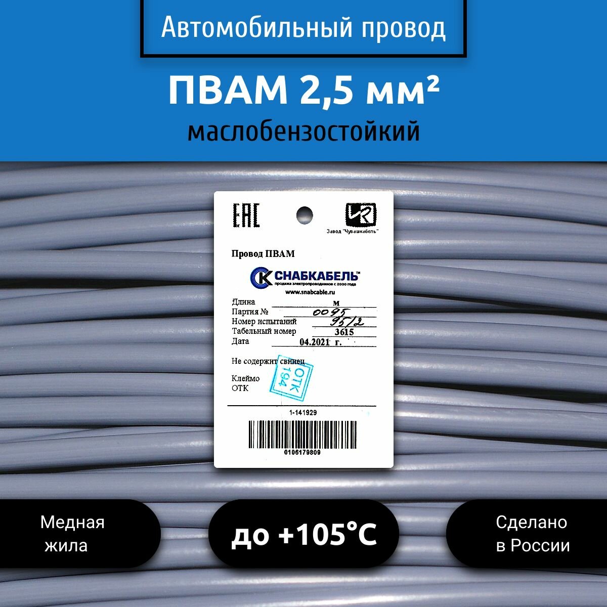 Провод автомобильный пвам (ПГВА) 2,5 (1х2,5) серый 5 м информация: