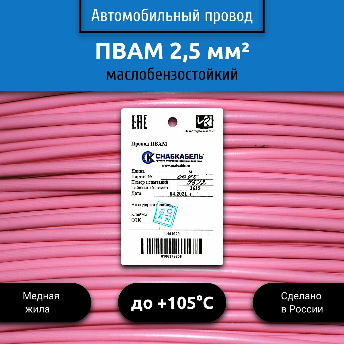 Провод автомобильный пвам (ПГВА) 2,5 (1х2,5) розовый 30 м информация: