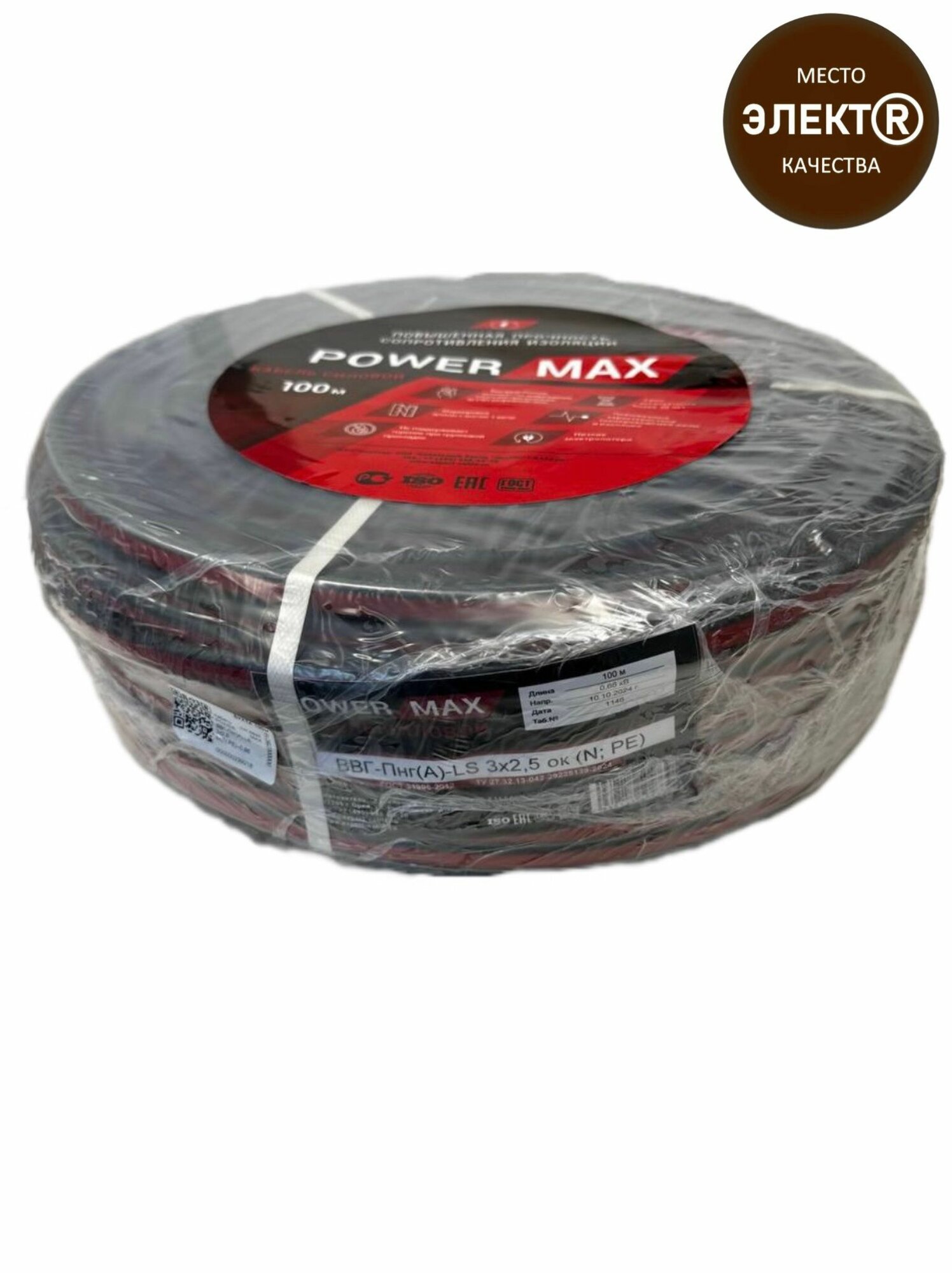Силовой кабель ВВГ-Пнг(A)-LS 3 x 2.5 мм, 50 м, 17600г, POWER MAX информация:
