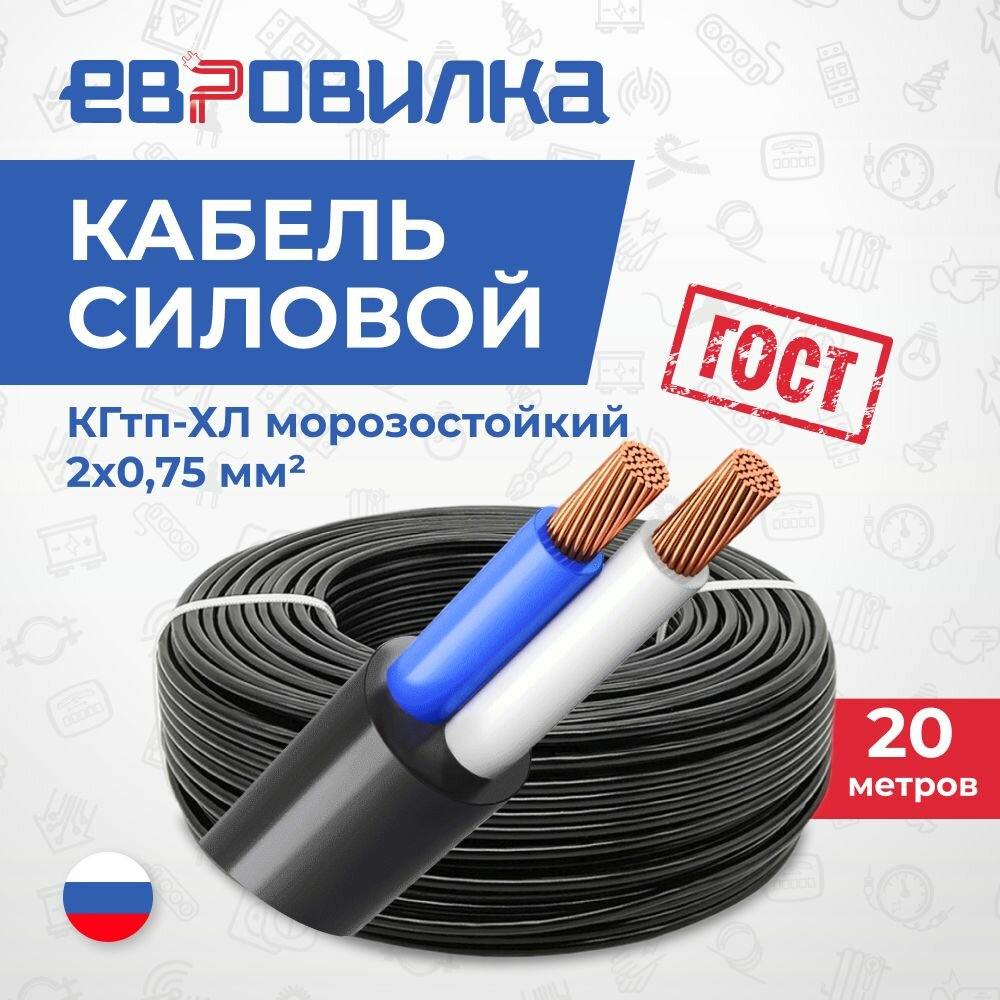 Кабель силовой КГтп-ХЛ морозостойкий 2х0,75 мм2 ГОСТ 20м информация: