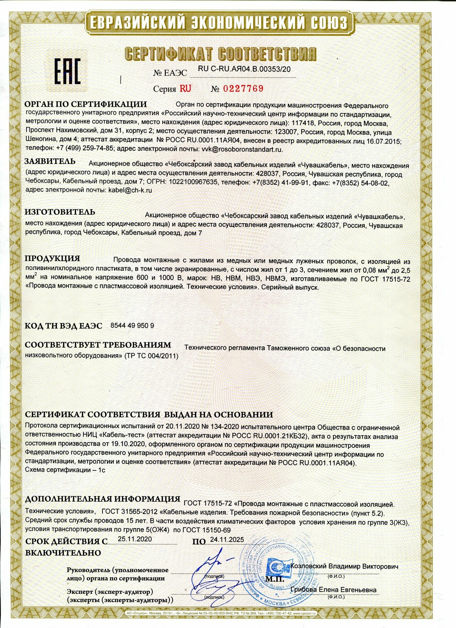 Электрический провод НВ 2,50мм2 3х1000В 30м белый 2 514 ₽