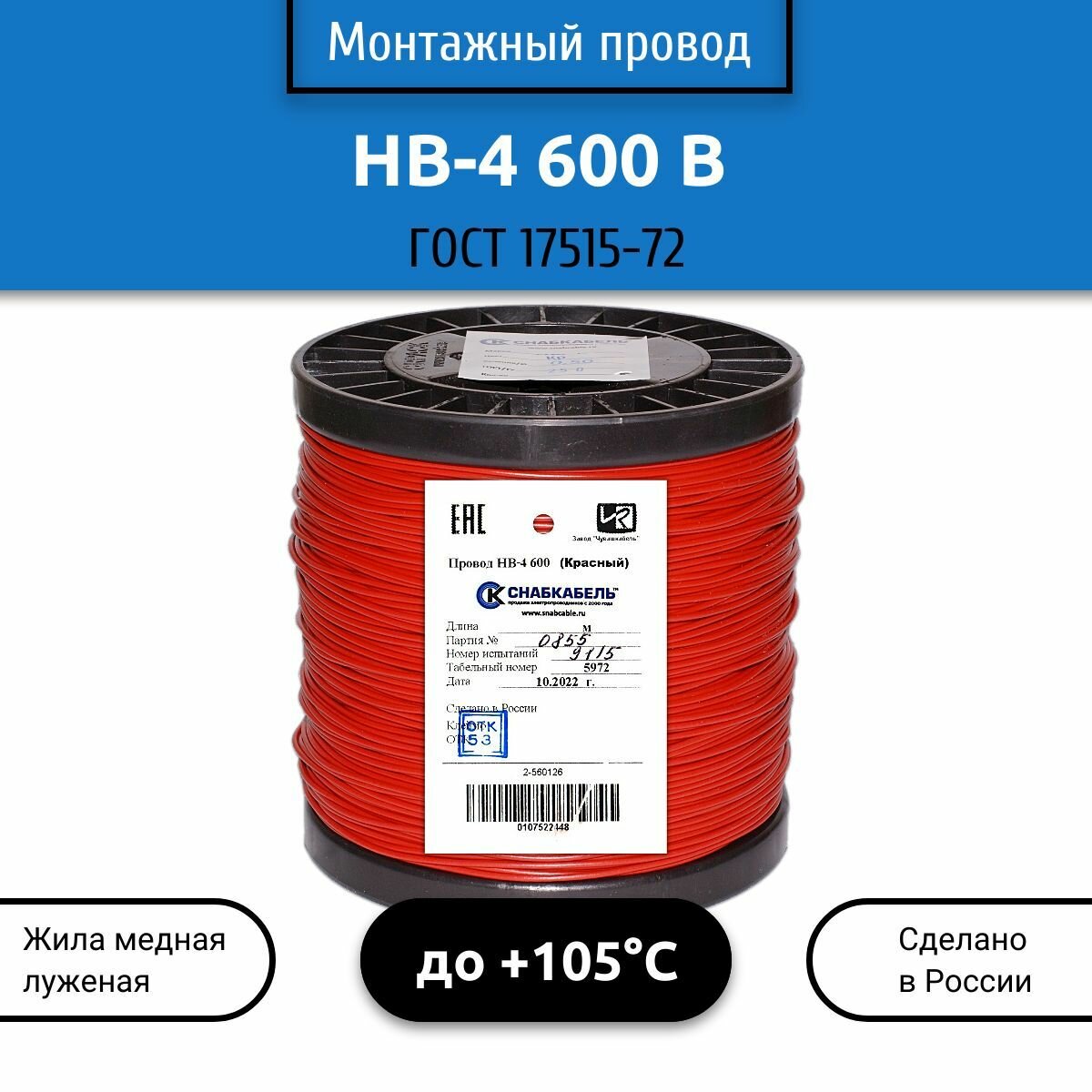 Электрический провод НВ 1,00мм2 4х600В 100 м красный на катушке 4 269 ₽