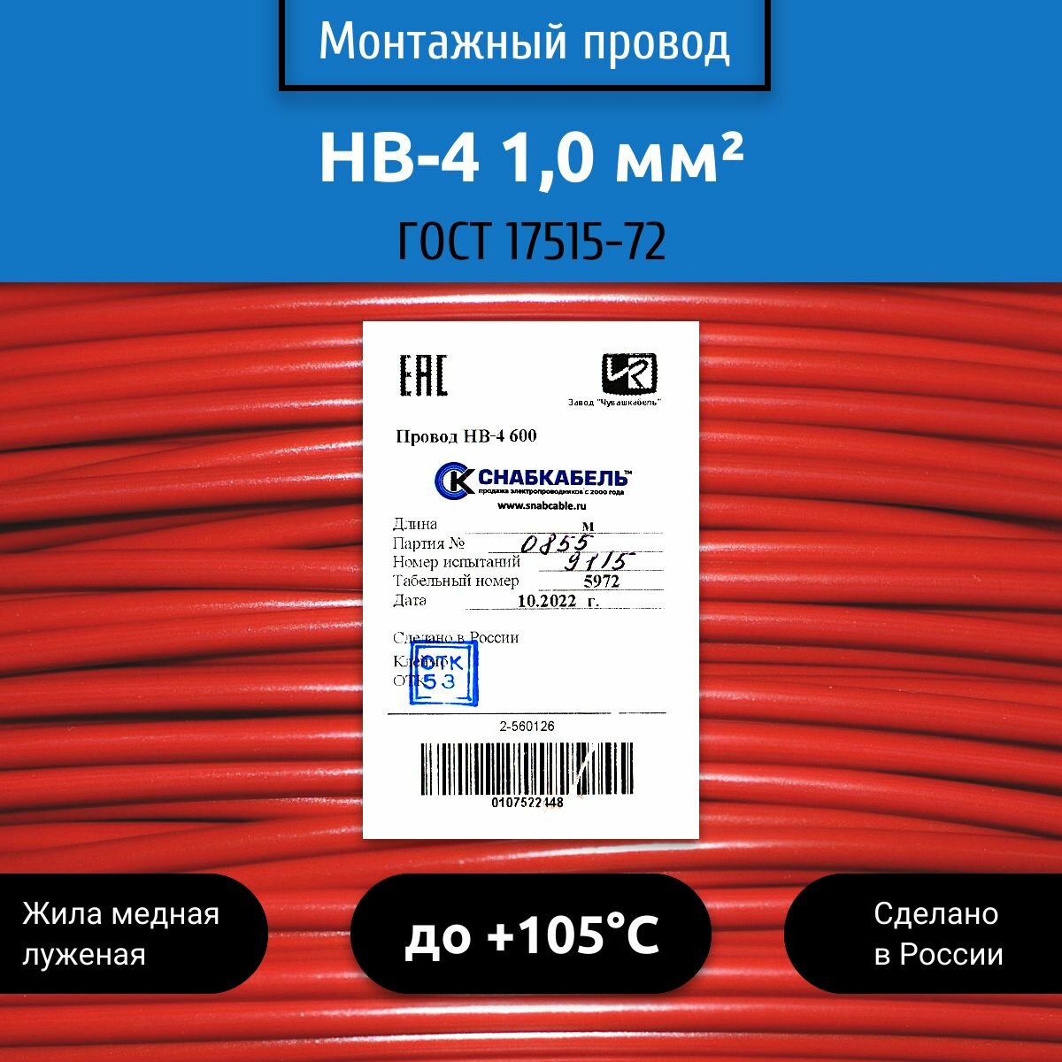 Электрический провод НВ 1,00мм2 4х600В 30м красный информация: