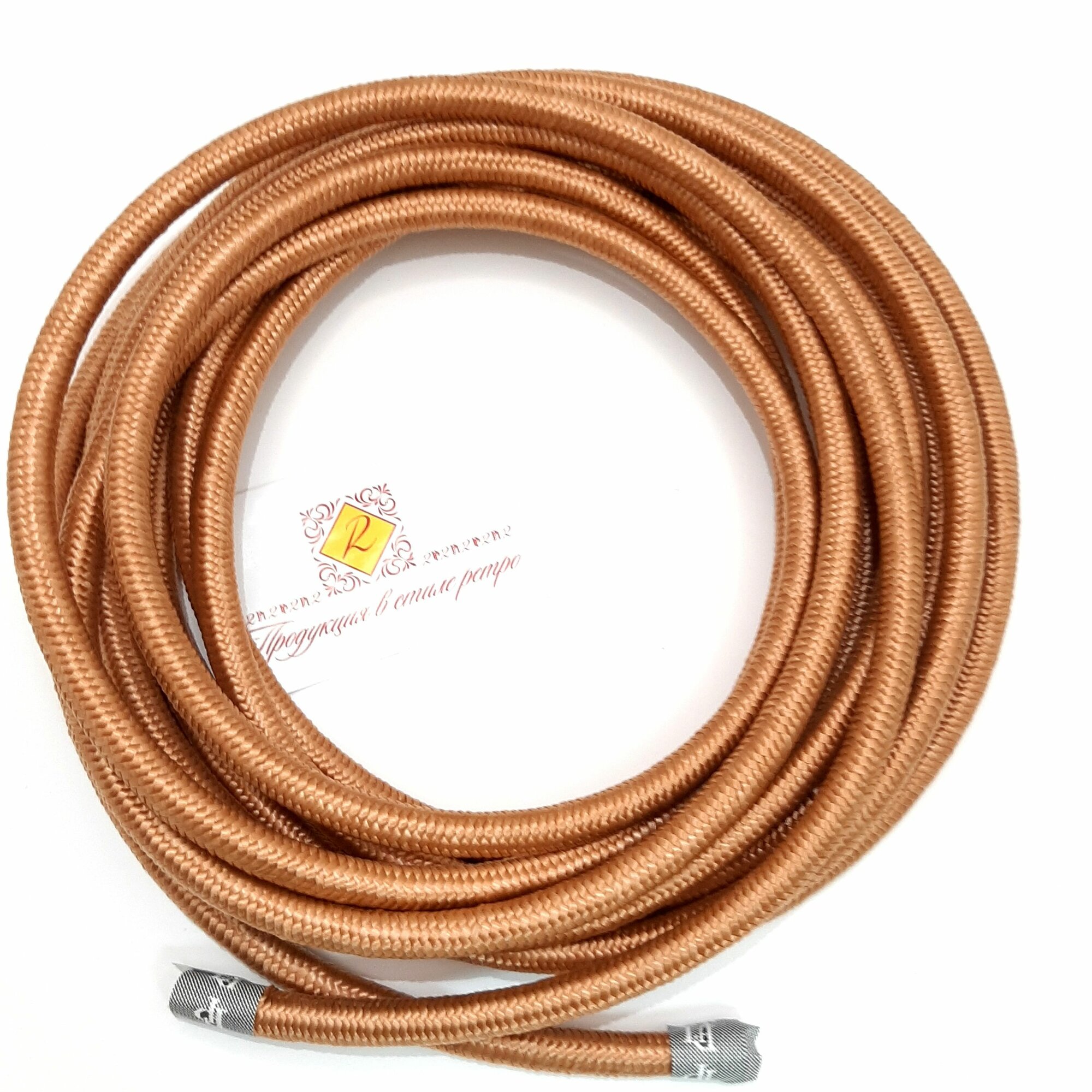 Провод ретро декоративный круглый в тканевой оплетке 2*0,75, 5м/уп, цвет медь информация: