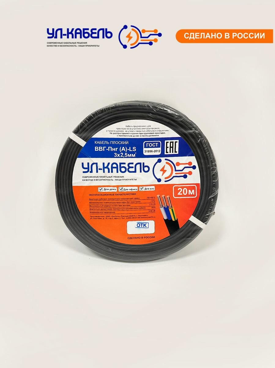 10 цен на Кабель плоский ВВГ-Пнг(А)-LS 3 x 2.5 мм , 20 м ГОСТ (УЛ-КАБЕЛЬ)