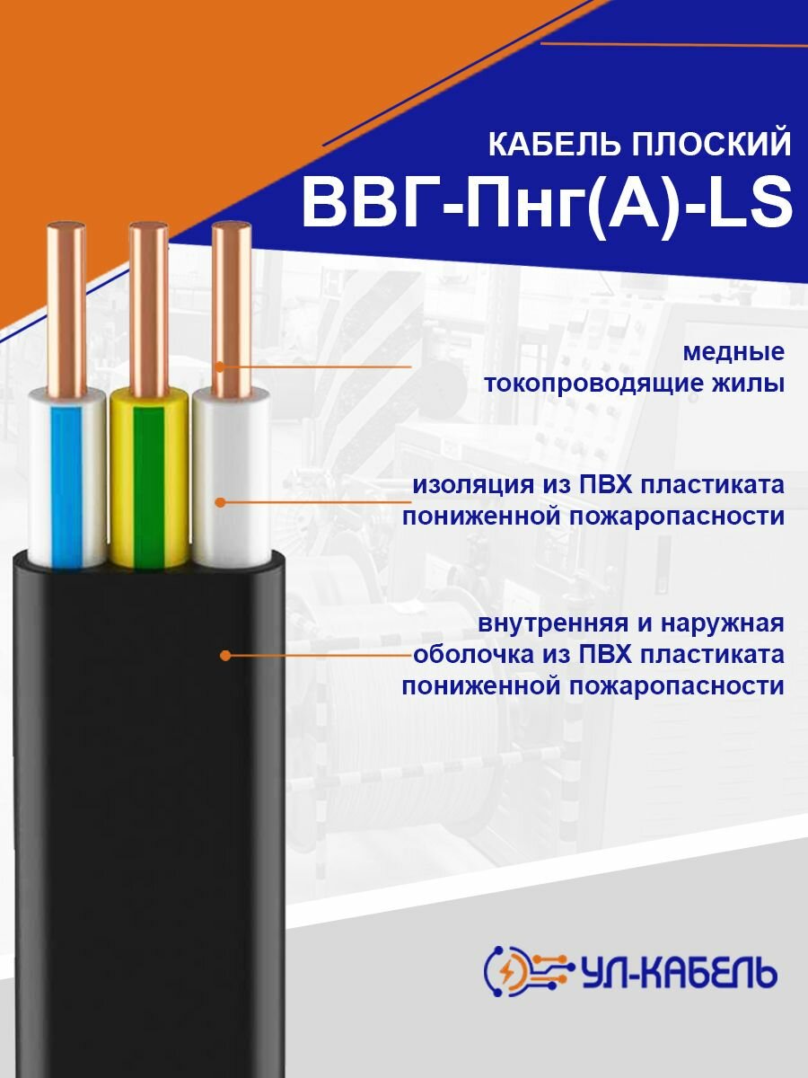 Отзывы на Кабель плоский ВВГ-Пнг(А)-LS 3 x 2.5 мм , 100 м ГОСТ (УЛ-КАБЕЛЬ)