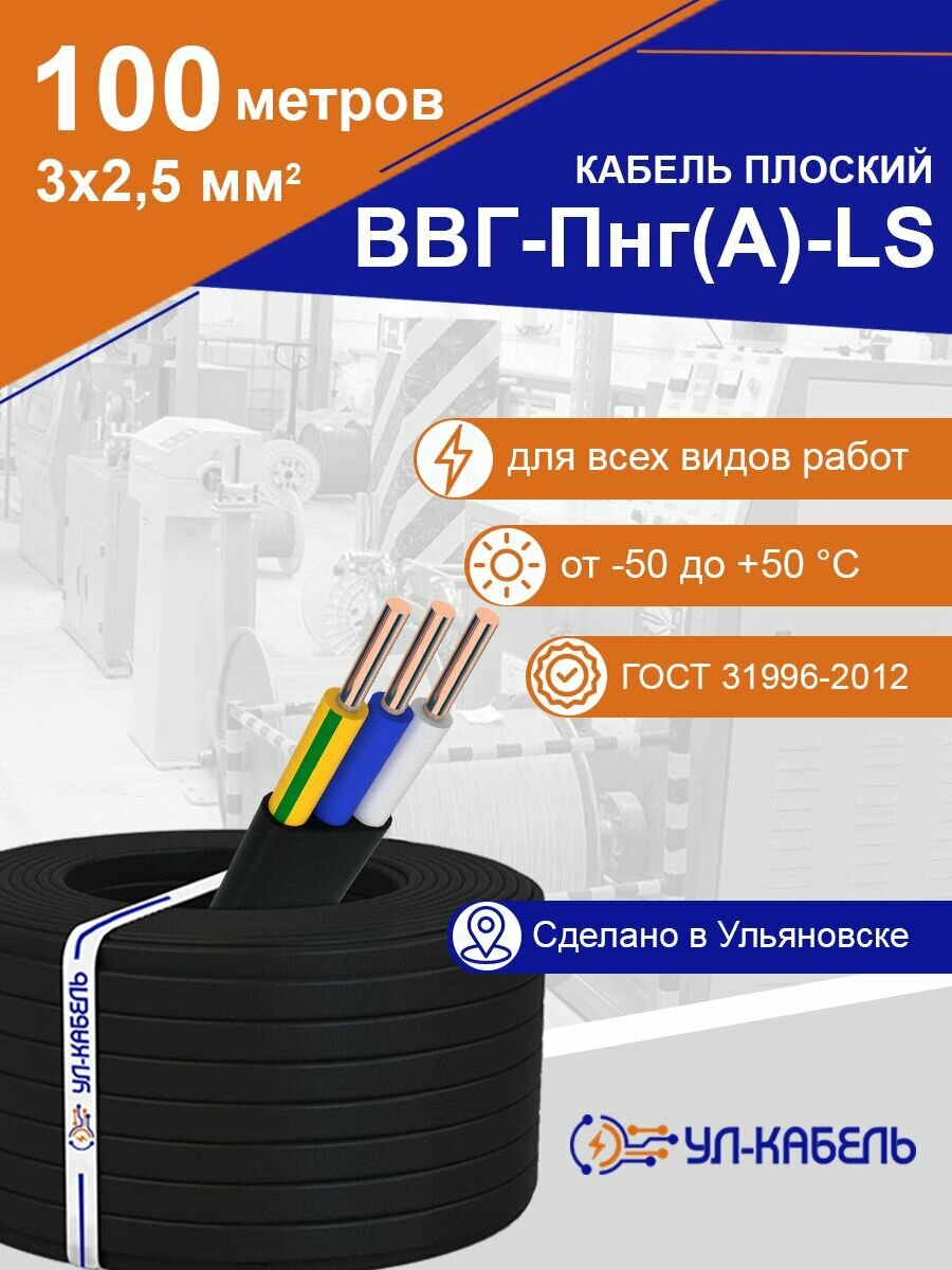 10 цен на Кабель плоский ВВГ-Пнг(А)-LS 3 x 2.5 мм , 100 м ГОСТ (УЛ-КАБЕЛЬ)