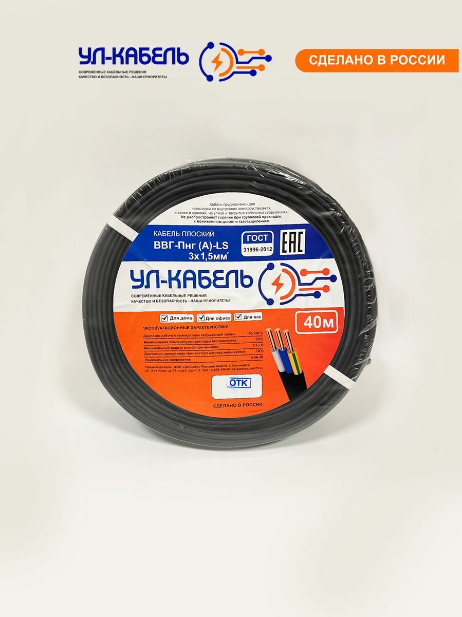 Отзывы на Кабель плоский ВВГ-Пнг(А)-LS 3 x 1.5 мм , 40 м ГОСТ (УЛ-КАБЕЛЬ)