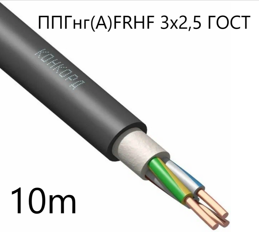 Кабель ППГнг(А)-FRHF 3х2.5 (N PE) 0.66кВ (м) Конкорд, 10 метров информация: