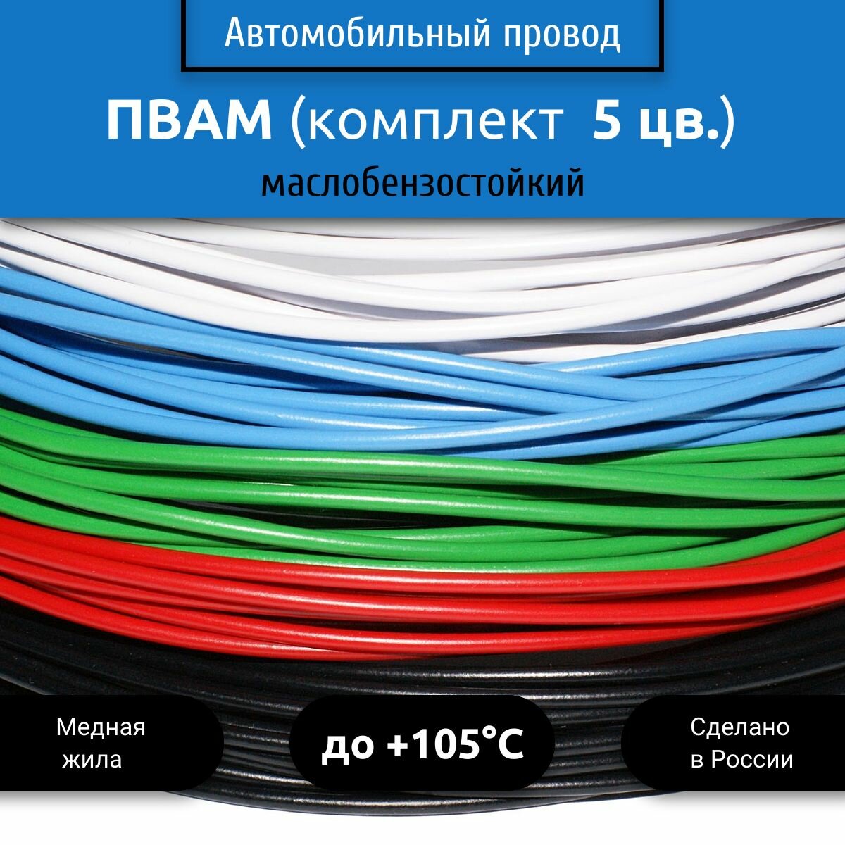 Комплект автомобильных проводов пвам 1,0 (1х1,0) 5 цветов по 5 м 1 555 ₽