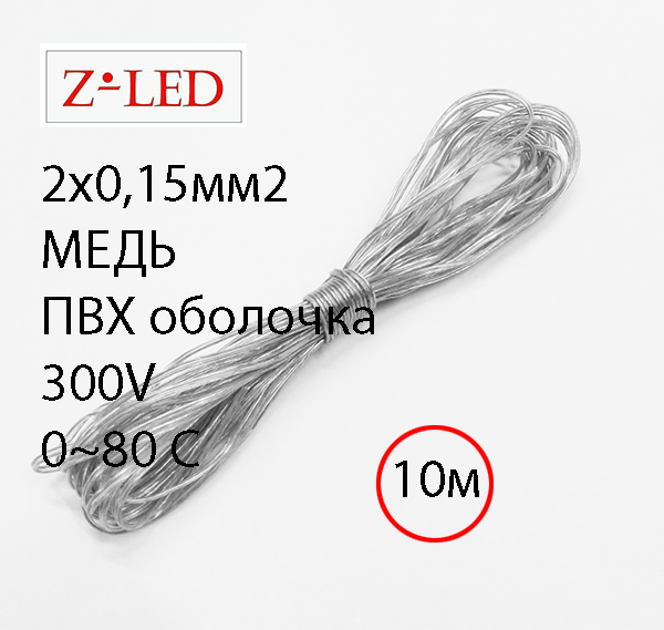 10 цен на Прозрачный электромонтажный кабель 2х0,15 прозрачная изоляция, 10м