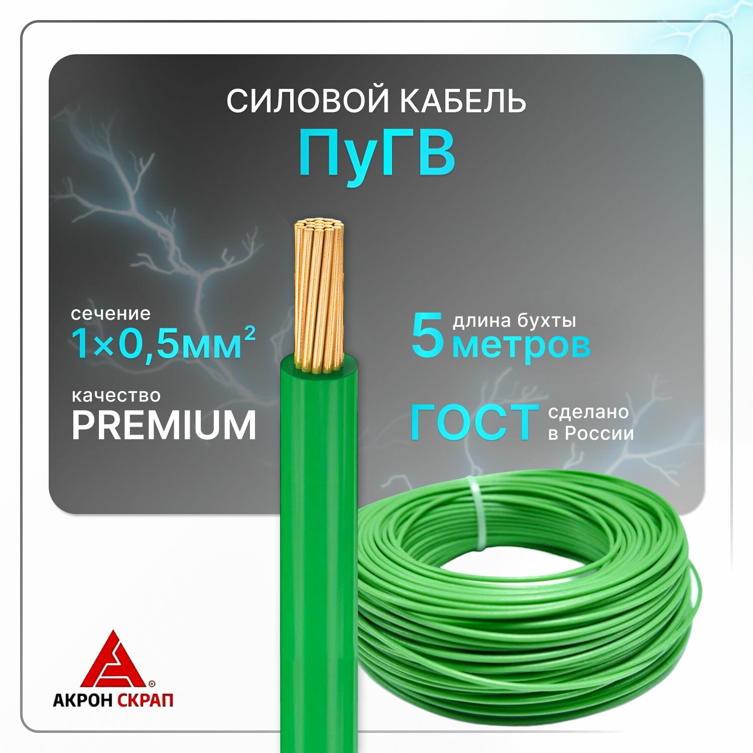Отзывы на Провод электрический рэмкaбель ПуГВ 1х0.5 зеленый ГОСТ круглый 5 м