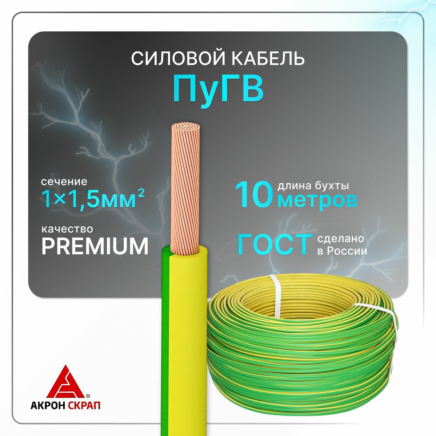 10 цен на Провод электрический рэмкaбель ПуГВ 1х1.5 ж/з ГОСТ круглый 10 м
