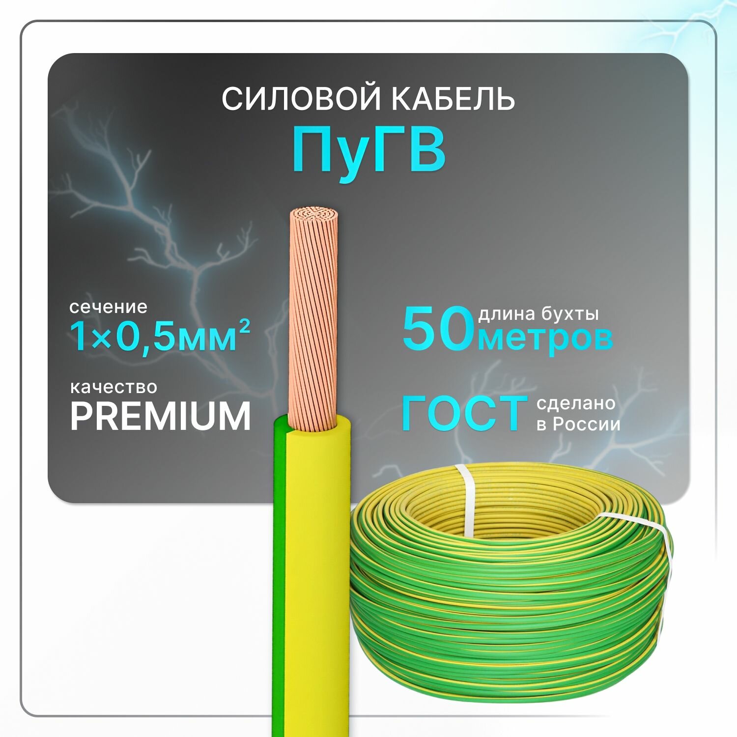 Отзывы на Провод электрический рэмкабель ПуГВ 1х0,5 ж/з ГОСТ круглый 50 м