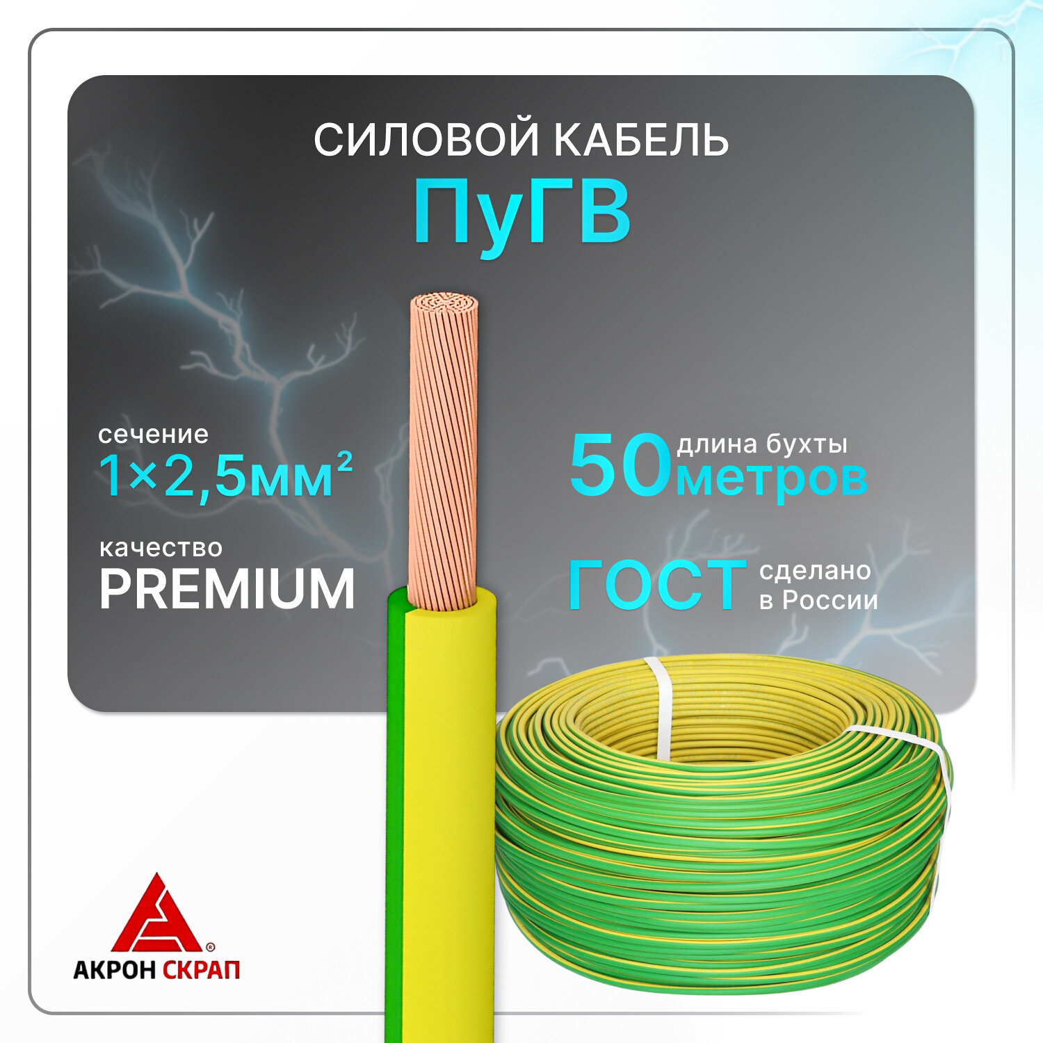 10 цен на Провод электрический рэмкaбель ПуГВ 1х2.5 ж/з ГОСТ ок круглый 50 м