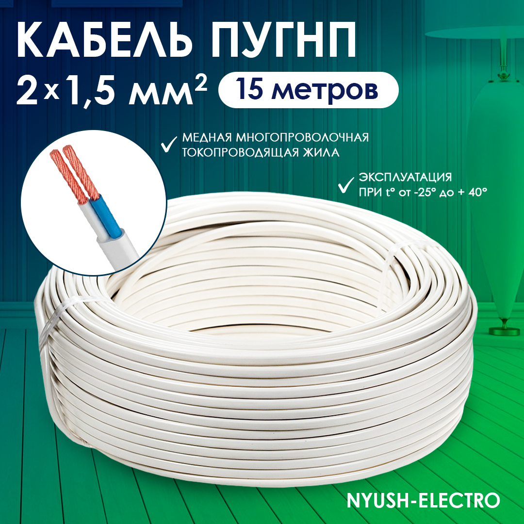 10 цен на Провод ПУГНП 2х1.5 мм2, медный кабель электрический, белый 15м