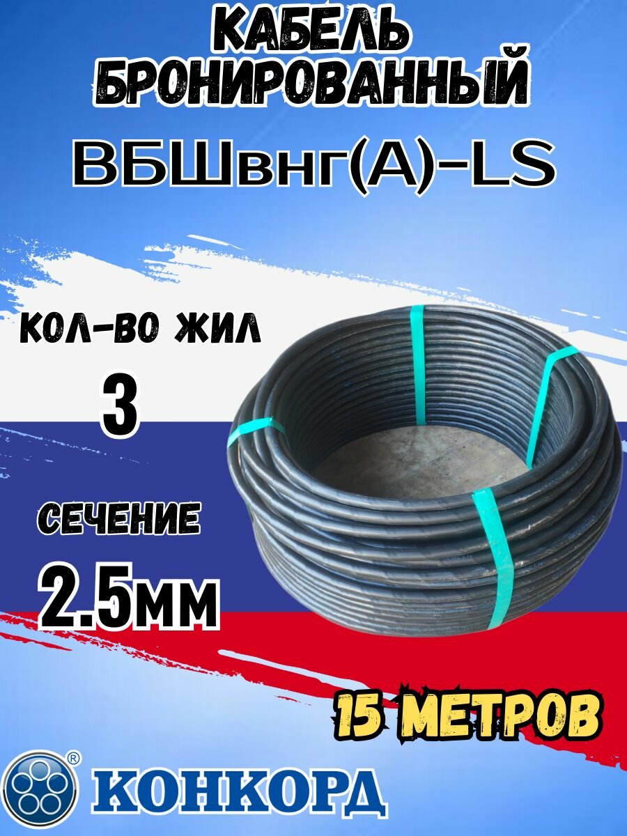 Кабель бронированный ВБШв нг(А)-LS 3х2,5 (N, PE) 15м Конкорд информация: