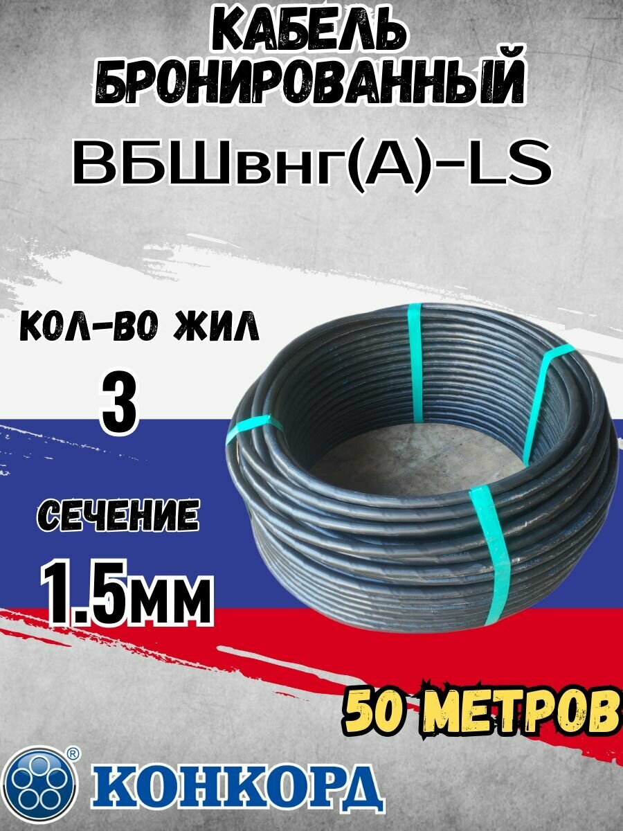 Кабель бронированный ВБШв нг(А)-LS 3х1,5 (N, PE) 50м Конкорд информация: