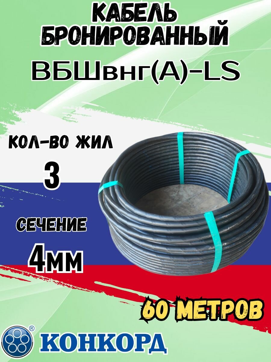 Кабель бронированный ВБШв нг(А)-LS 3х4 (N, PE) 60м Конкорд информация: