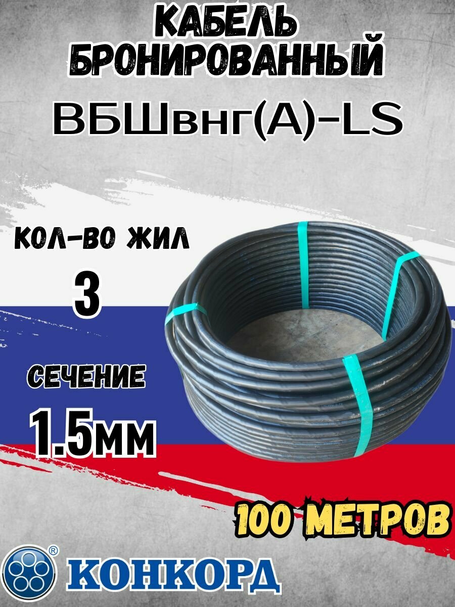 Кабель бронированный ВБШв нг(А)-LS 3х1,5 (N, PE) 100м Конкорд информация: