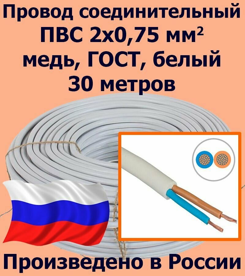 Провод соединительный ПВС 2х0,75 мм2, белый, медь, ГОСТ, 30 метров информация: