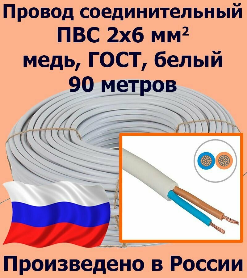 10 цен на Провод соединительный ПВС 2х6 мм2, белый, медь, ГОСТ, 90 метров