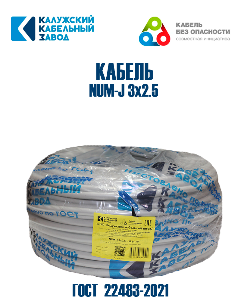 Кабель NUM-J-3x2.5 ГОСТ Калужский Кабельный Завод - 100 метров