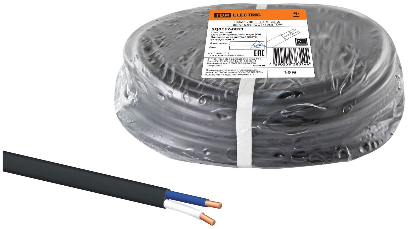 Кабель ВВГ-П нг(А) 2х1,5 ок(N)-0,66 ГОСТ (10м) TDM информация:
