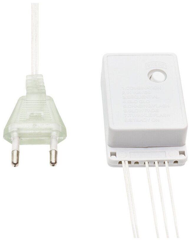Гирлянда "Нить" 4 м с насадками "Звёздочка", IP20, прозрачная нить, 20 LED, свечение тёплое белое, 8 режимов, 220 В